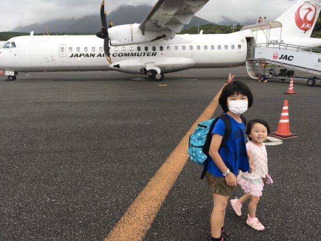 台風の影響で、混雑気味の屋久島空港を飛び立ち、鹿児島空港で乗