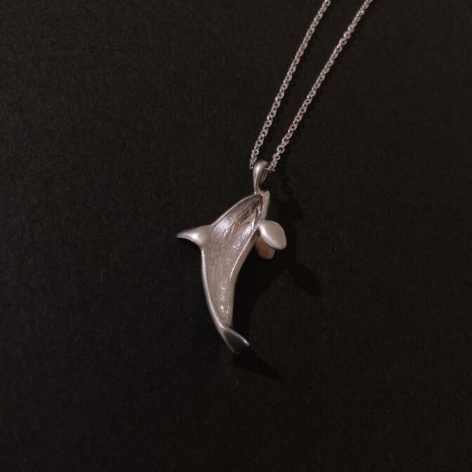 さわやかな海の世界をイメージさせる、ジャンプした瞬間をとらえたシャチのネックレス「Jump!」。